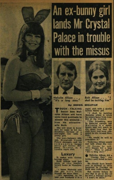 The Evening News urged Allison to give City ‘some heart'. But his heart now lay elsewhere. Allison had been having a long-standing affair with former "Bunny Girl" Serena Williams, who was now the PR for London's Playboy Club.