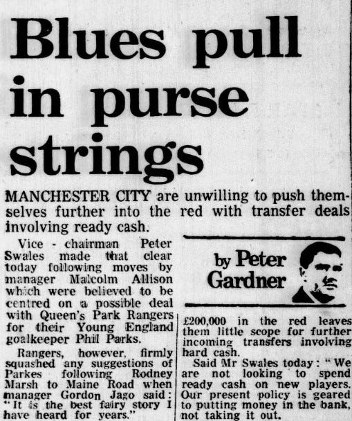 "Our manager Malcolm Allison is aware that we are not, at this time, prepared to spend money on players."