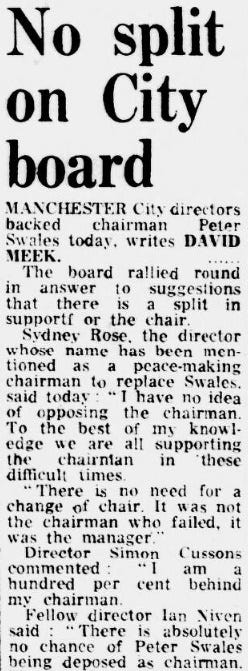 The views of the club’s president were not offered to the Evening News. But Swales knew that his position was now under threat.