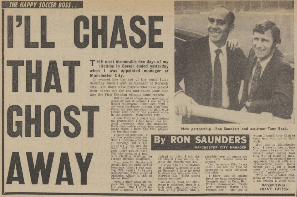 Saunders’ friends were right: the ghost of Malcolm Allison was still at Maine Road.