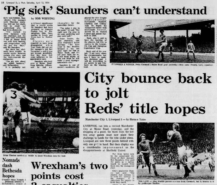“I'm pig sick about the whole business,” Saunders told the Liverpool Daily Post. “I've worked in close harmony with the chairman and the board—and everything I did at Maine Road was with their backing and co-operation until the last few days.”