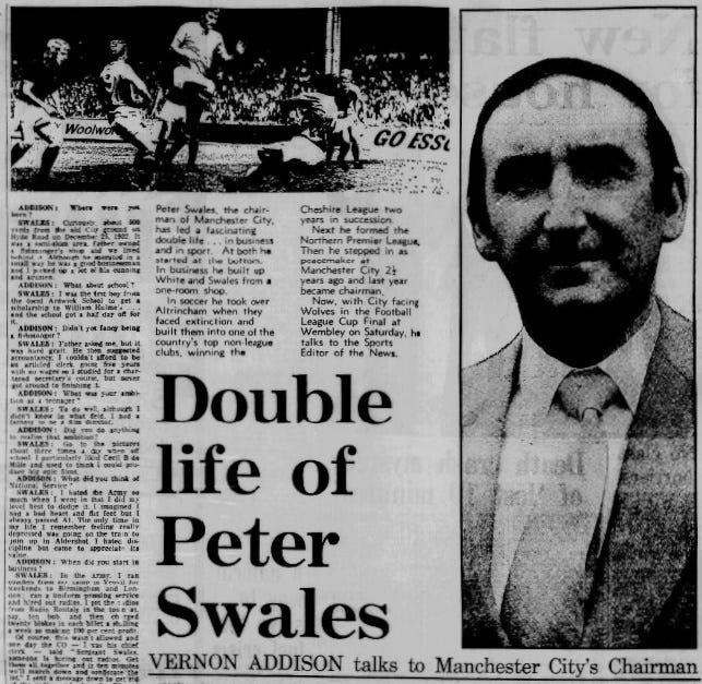 In the 1974-75 season City acquired a vice-president. The holder of the newly-created position wasn’t a club director. But he did have long-standing business ties to Swales.