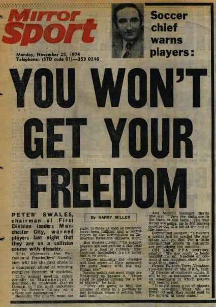 On the eve of a Professional Footballers’ Association meeting in Manchester that would call for freedom of movement, Swales was tasked by the FA with outlining the case against.