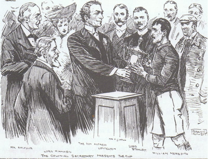 Presenting the trophy is Colonial Secretary Alfred Lyttelton, the youngest child of 4th Baron Lyttelton.