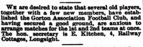 On Wednesday 29 October 1884, the announcement of Gorton AFC's formation appeared on the front page of Britain’s biggest weekly sporting newspaper, the Athletic News.